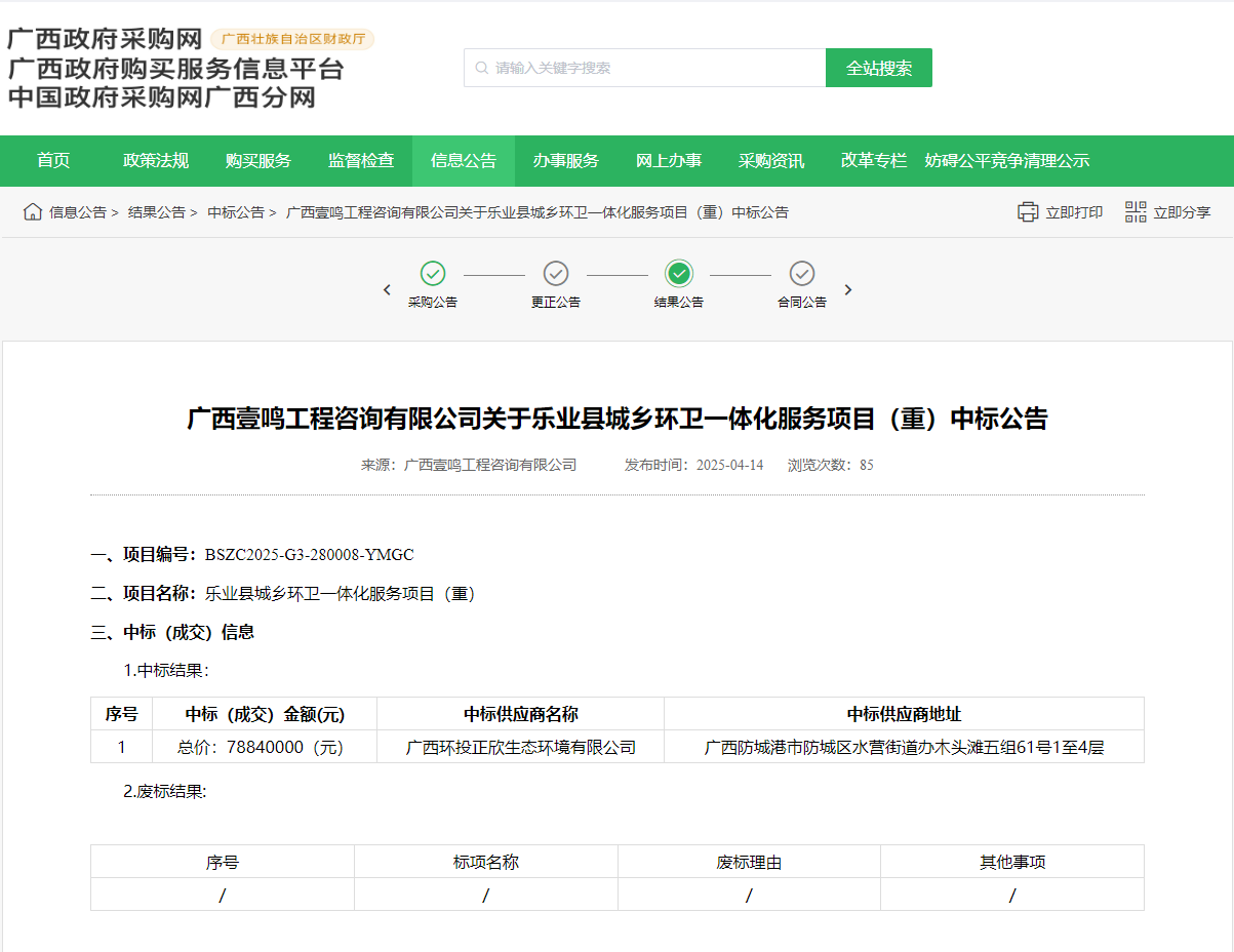 成功落地防城区13个乡镇街道办及小峰经济作物场生活垃圾收集转运项目、柳州市城中区环卫市场外包服务项目、防城港市城区垃圾中转站服务,打造以城乡垃圾收集清运、垃圾分类、道路清洁、景观养护、河道清洁为一体的“大环卫”体系。