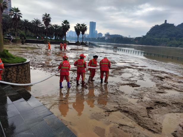 媒体关注丨广西环保集团环卫工人清淤保畅