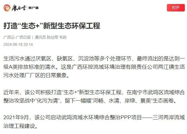 媒体聚焦 | 广西环保集团:以智慧水务守护绿水青山