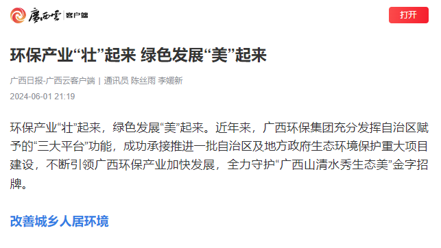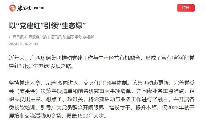媒体关注 | 广西环保集团:党建与生产经营有机融合 加快培育新质生产力