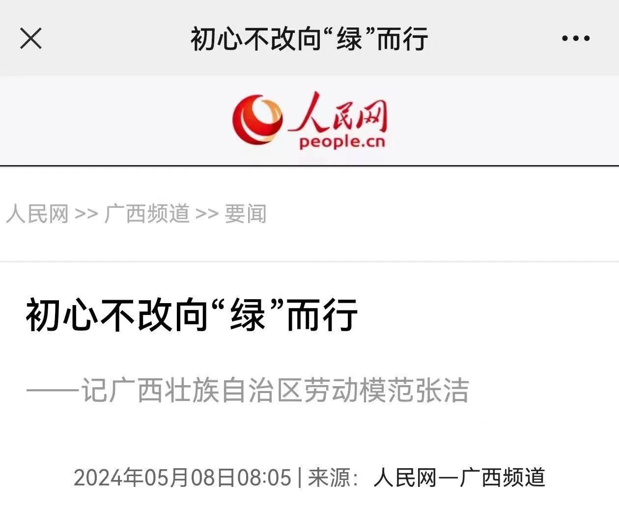 央媒关注丨人民网:初心不改向“绿”而行——记广西壮族自治区劳动模范张洁